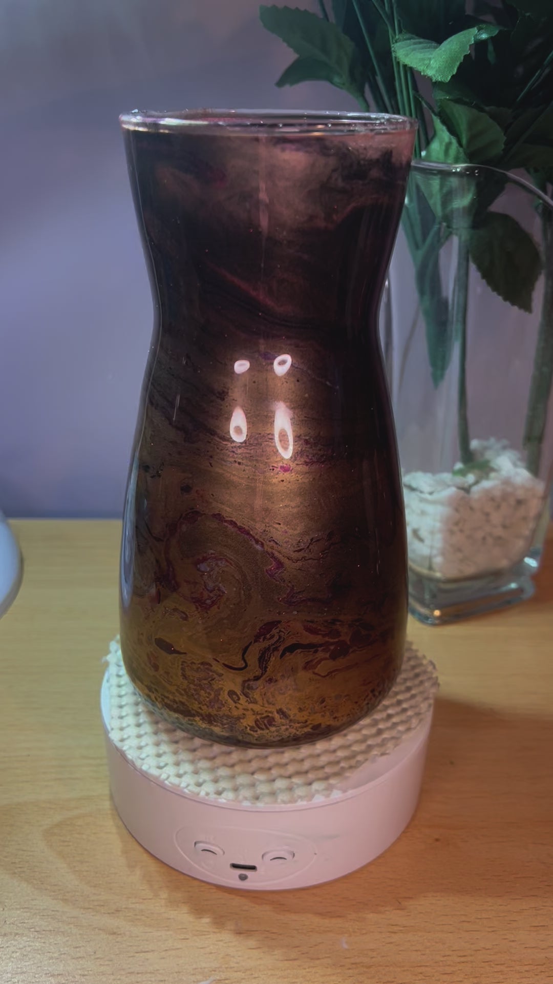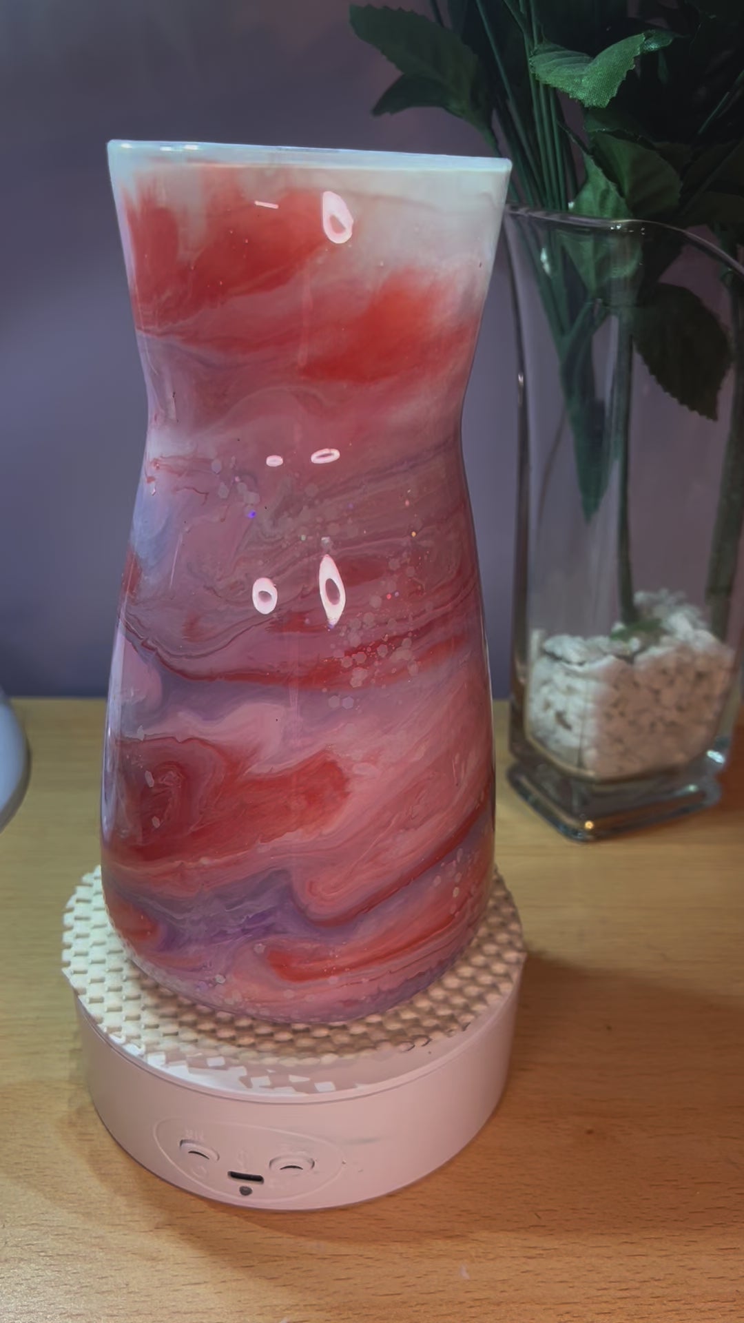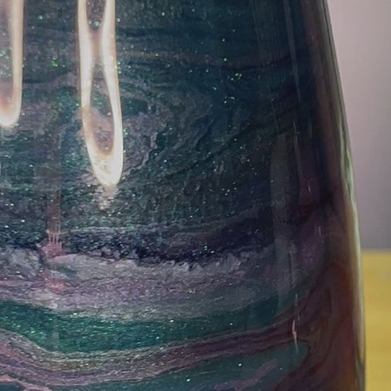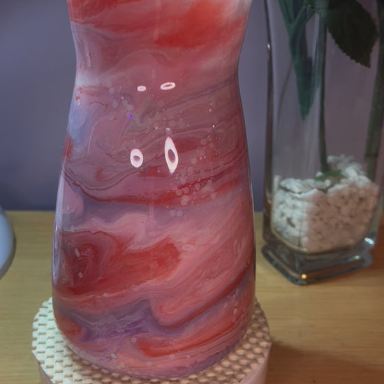 Glass vase with resin 8 inches/20com in height with mica powders, inks, glitter or shimmer.