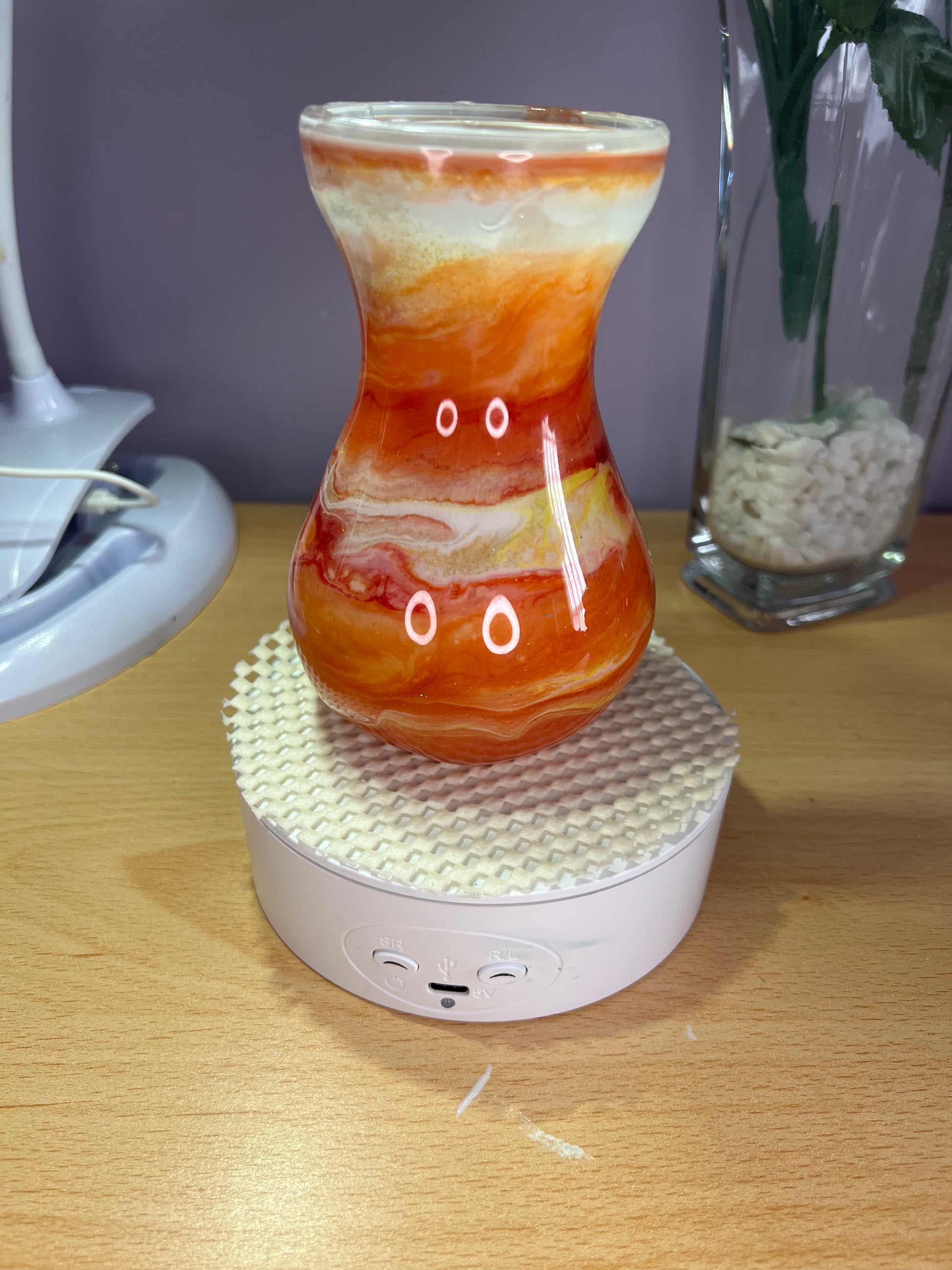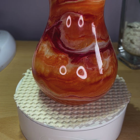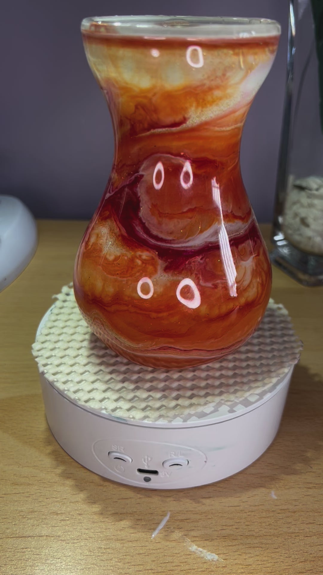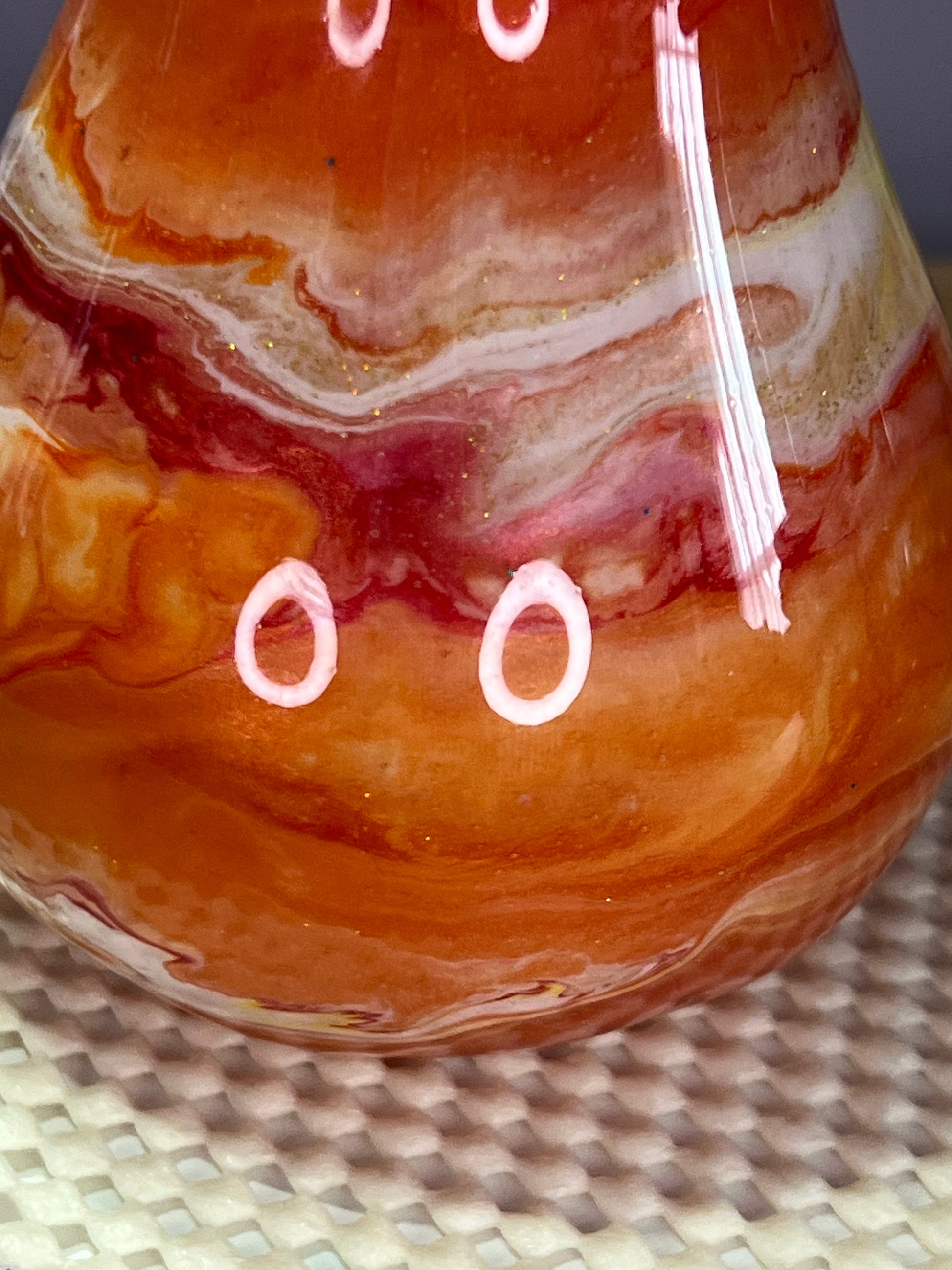 Mini glass vase with inks, mica powder and white shimmer swirl.